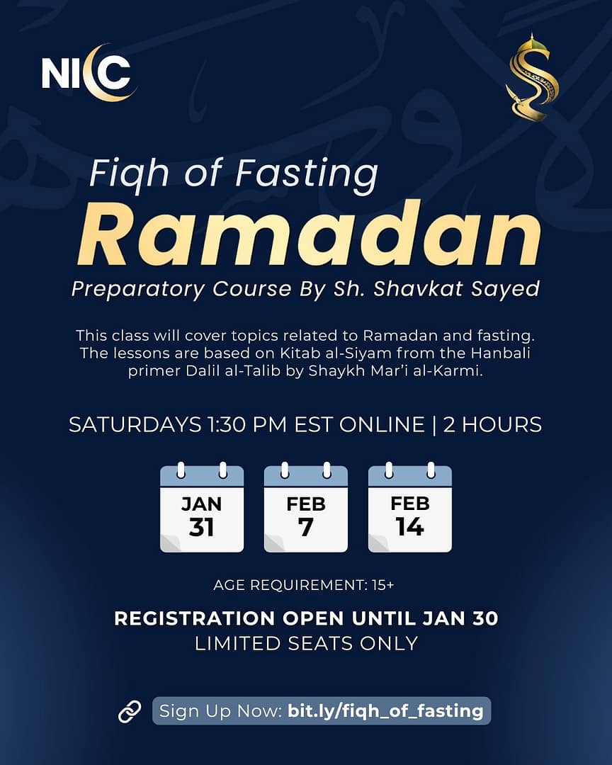 Fiqh of Fasting – Ramadan Preparatory Course with Sh. Shavkat Sayed, where we’ll explore the rulings and wisdom of fasting rooted in classical scholarship, based on Kitab al-Siyam from Dalil al-Talib (Hanbali fiqh).