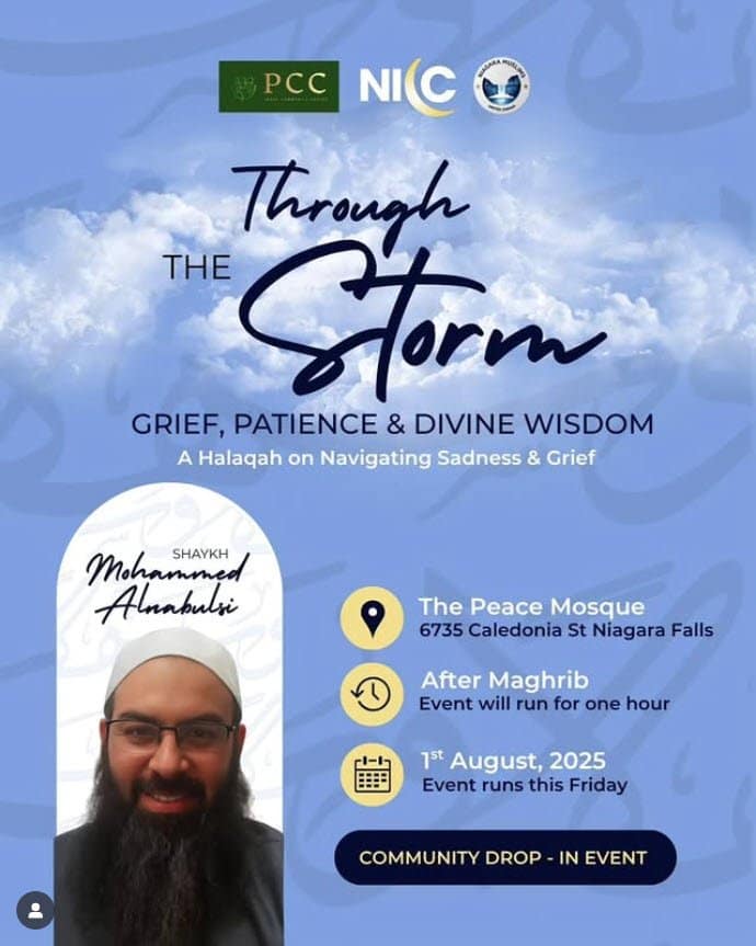 We are honoured to host Sheikh Mohamed Alnabulsi, in collaboration with The Peace Mosque, for a community halaqah on grief, patience, and divine wisdom.